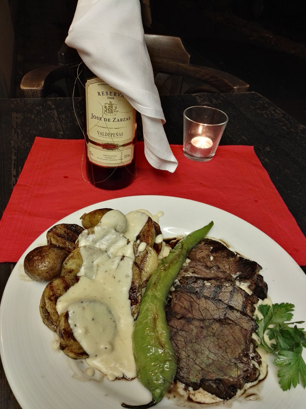 AUSTRALISCHES Rumpsteak frisch und Freilandhaltung 300g mit hausgemachter Kräuterbutter, einem frischen Beilagensalat, gegrilltem Gemüse, Cacik und Country Potatoes oder Bulgur.